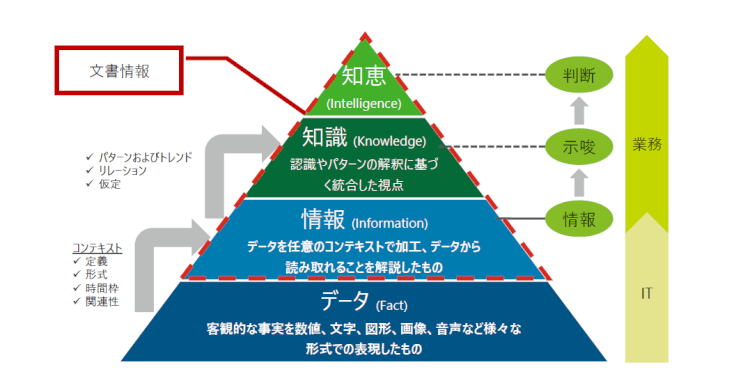 ここで言う“文書情報”ですが、紙の文書や電子機器で扱うフォーマットを含め、業務で作成・取得したすべての「情報・知識・知恵」を包含するものと考えてください。