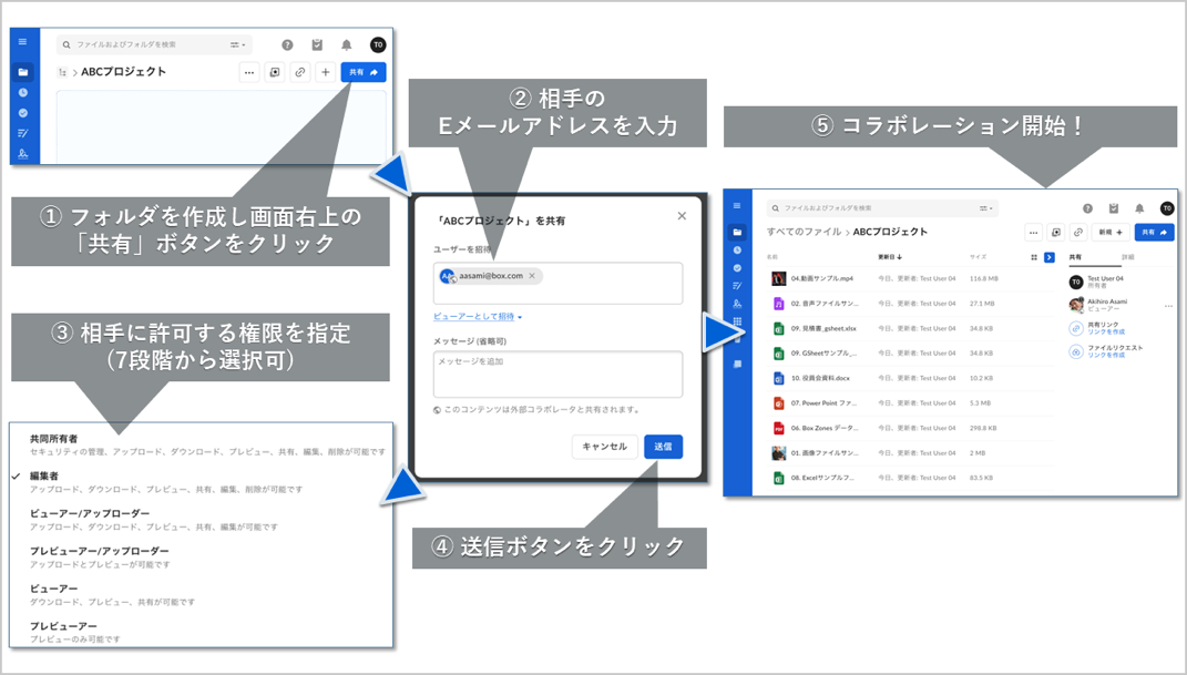 図5:コラボレーションの相手をフォルダへ招待する手順(詳細はこちら:資料|動画)