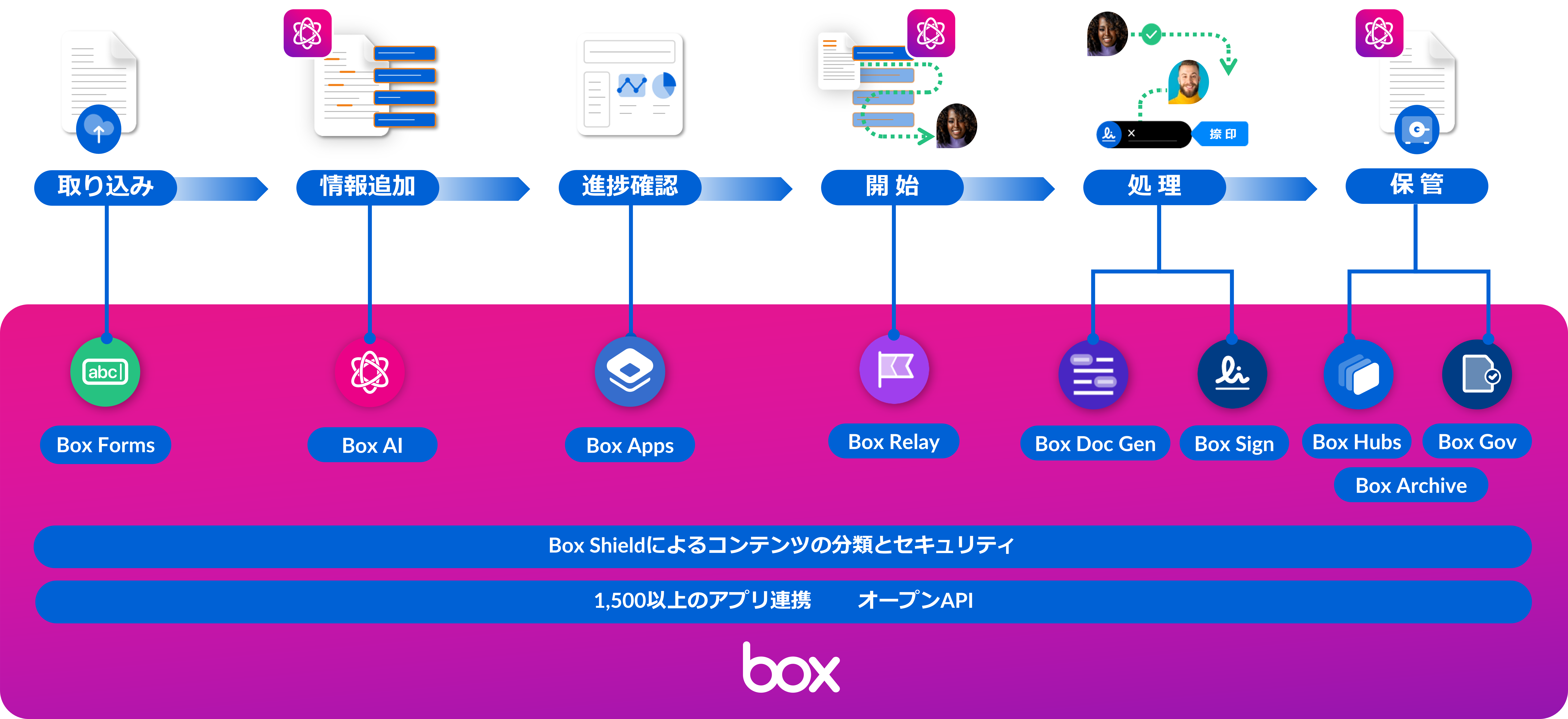 87%の企業がAIエージェントを利用し始めています。Boxなら、Box AI、Box Forms、Box Doc Gen、Box Relay、Box Sign、Box Appsで「申請→文書生成→承認→署名→管理」の一連の業務を自動化して、AIで効率化できます。